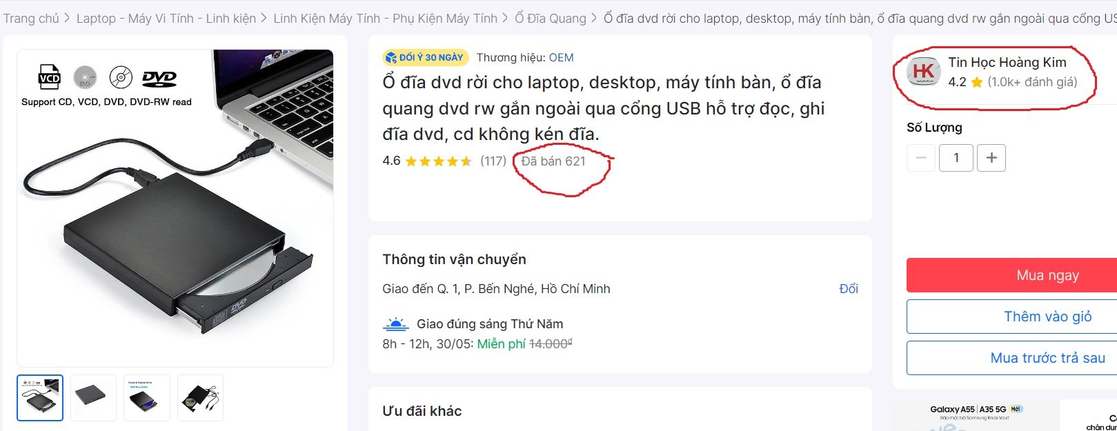 Ổ đĩa dvd gắn ngoài qua cổng usb nhỏ gọn,tiện dụng,đọc được mọi loại đĩa CD, VCD,DVD#odiadvdganngoai