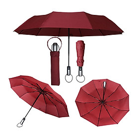 Ô cán dài đi mưa cỡ lớn 24 nan chồng lật cao cấp màu đỏ đô - vài sợi carbon tổng hợp siêu chống thấm, chống tia UV - Dù có đường kính lớn, tán