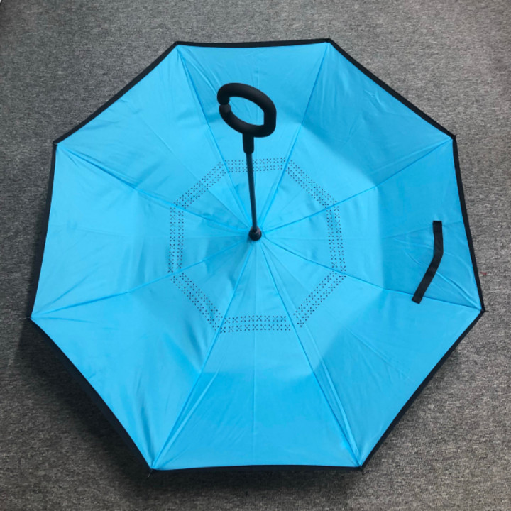 - Không bị ướt khi đóng lại: Chiếc dù mở ngược được mở từ bên trong ra ngoài, giống như một nụ cây nở hoa khi đóng lại mặt ngoài che mưa sẽ được giấu trong, còn mặt trong (khô ráo) sẽ trở thành mặt ngoài, vì vậy, có thể thoải mái cầm dù mà không sợ bị ướt, và nước mưa cũng sẽ không nhỏ giọt xuống sàn nhà như loại dù truyền thống Không làm ướt sàn ô tô, sàn nhà: Đó là nhờ thiết kế đóng dù sáng tạo đồng thời chất liệu dù không thấm nước, chia làm 2 lớp thông minh