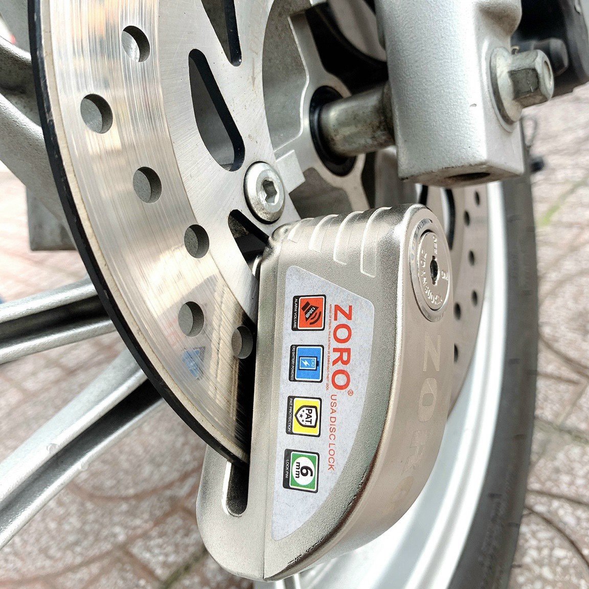 Ổ KHOÁ ĐĨA XE MÁY ZORO BÁO ĐỘNG CHỐNG TRỘM MẪU MỚI PHIÊN BẢN MÀU TRẮNG BẠC