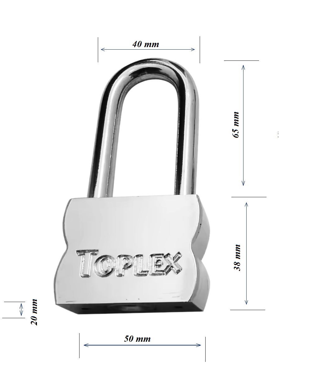 Ổ khóa Toplex 1205-50 mm cao cấp được sản xuất theo công nghệ của Đức Bộ 4 chìa, công nghệ cao khóa an toàn, chống chìa giả. Thân bằng hợp kim thép, lõi hợp kim