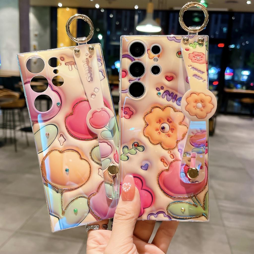 ✨Ốp Lưng Cho Samsung S25 ULTRA / S24 Ultra / S24 PLus / S23 Ultra / S23 PLus Hoa 3D Kim Tuyến Đính Đá Có Dây Xỏ Tay Và Làm Gía Đỡ - Bum Store Galaxy Case