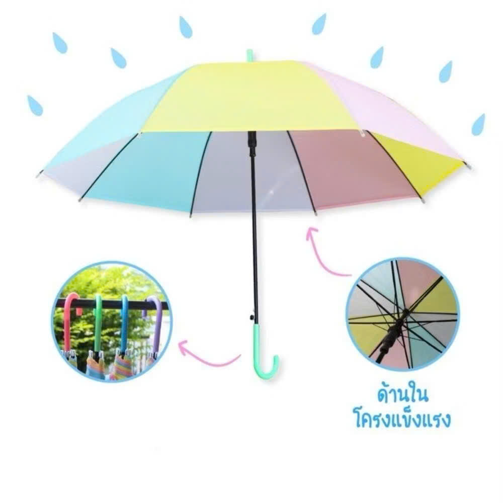 - Màu sắc: Ô có thiết kế trong suốt với nhiều màu sắc cầu vồng rực rỡ, tạo điểm nhấn nổi bật trong mọi bức ảnh. Cán ô có màu ngẫu nhiên thêm phần thú vị và dễ phối hợp với nhiều phong cách trang phục. Ưu Điểm Nổi Bật: