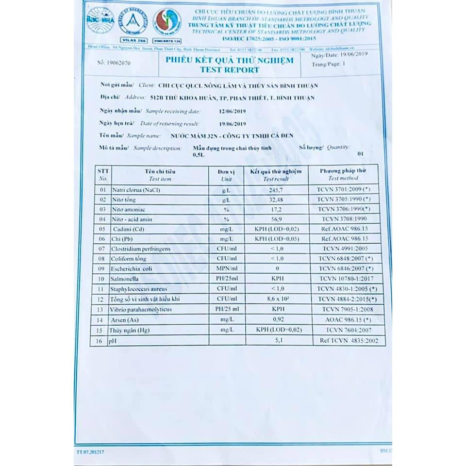Mua tại TiktokNước Mắm Cá Đen Phan Thiết đạt chứng nhận tiêu chuẩn HACCP ( tiêu chuẩn VSATTP Châu Âu), OCOP 4 SAO (hạng mục tỉnh Bình Thuận), có giấy phép kiểm định của viện Pasteur HCM