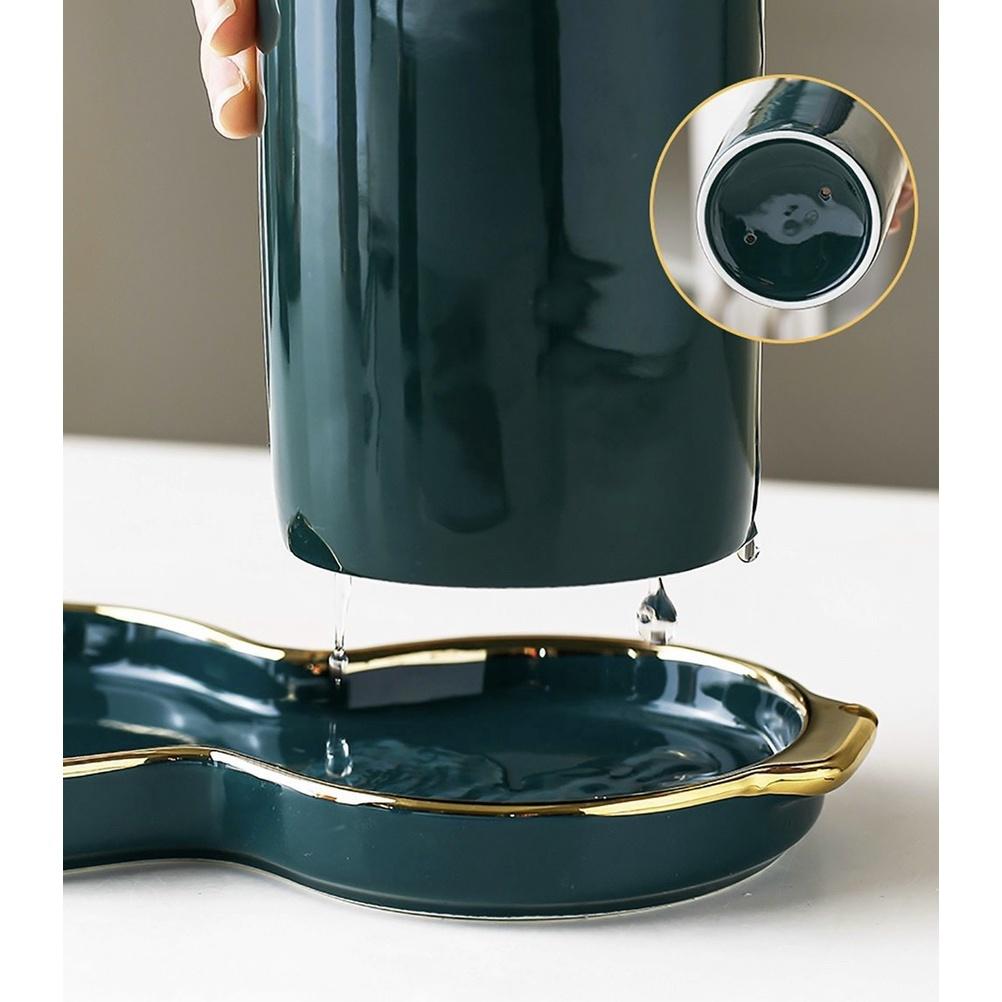 Bộ ống đựng đũa, thìa, muỗng, nĩa Sứ mạ vàng cao cấp sang trọng. Có đĩa hứng nước phong cách Bắc Âu