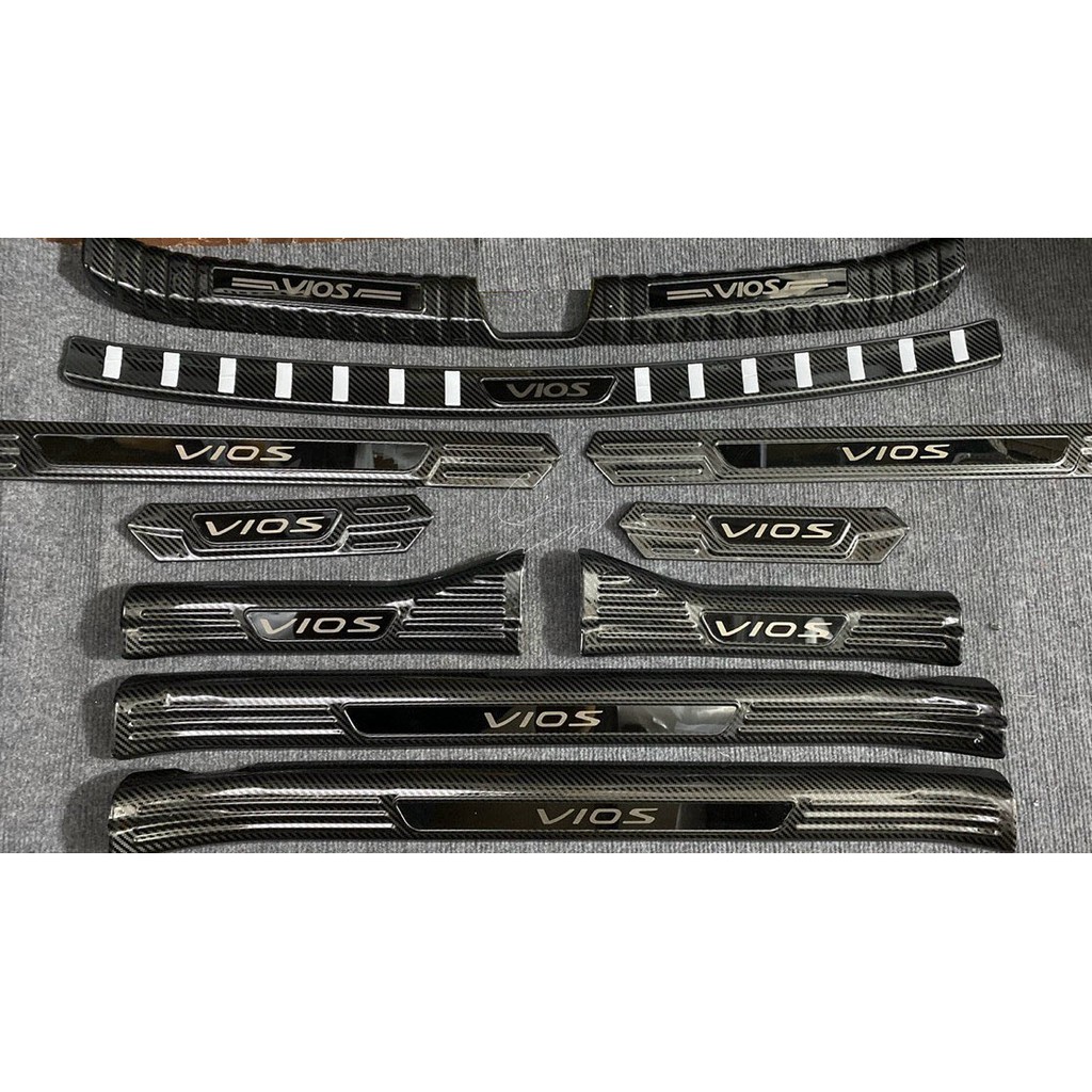 Ốp bậc cửa, nẹp bước chân cacbon xe Vios 2019, 2020, 2021, 2022 Vân carbon cao cấp