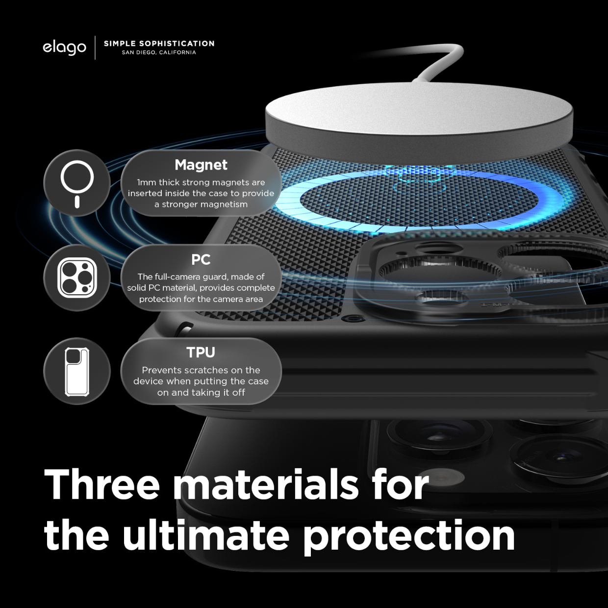 - Tương thích với sạc từ tính (Mag - Safe) - Cho phép sạc không dây nhanh chóng, không cần tháo ốp – tiện lợi trong mọi tình huống sử dụng. - Bảo vệ toàn