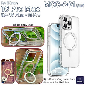 Ốp lưng cho iPhone 16 Pro Max - 16 Pro - 16 Plus WI WU MCC-201 nhựa cứng trong viền dẻo + vòng nam châm kiêm giá đỡ xếp gọn - là sản phẩm chính hãng đến từ Thương hiệu: Wi WU