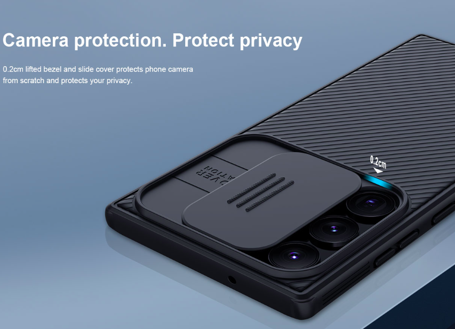 Ốp lưng thiết kế với phần nắp che camera độ mỏng 0.2mm có khả năng kéo vào / ra giúp bảo vệ camera, chống trầy chống bụi hiệu quả. Bào vệ chiếc Samsung Galaxy S23 Ultra một cách an toàn.