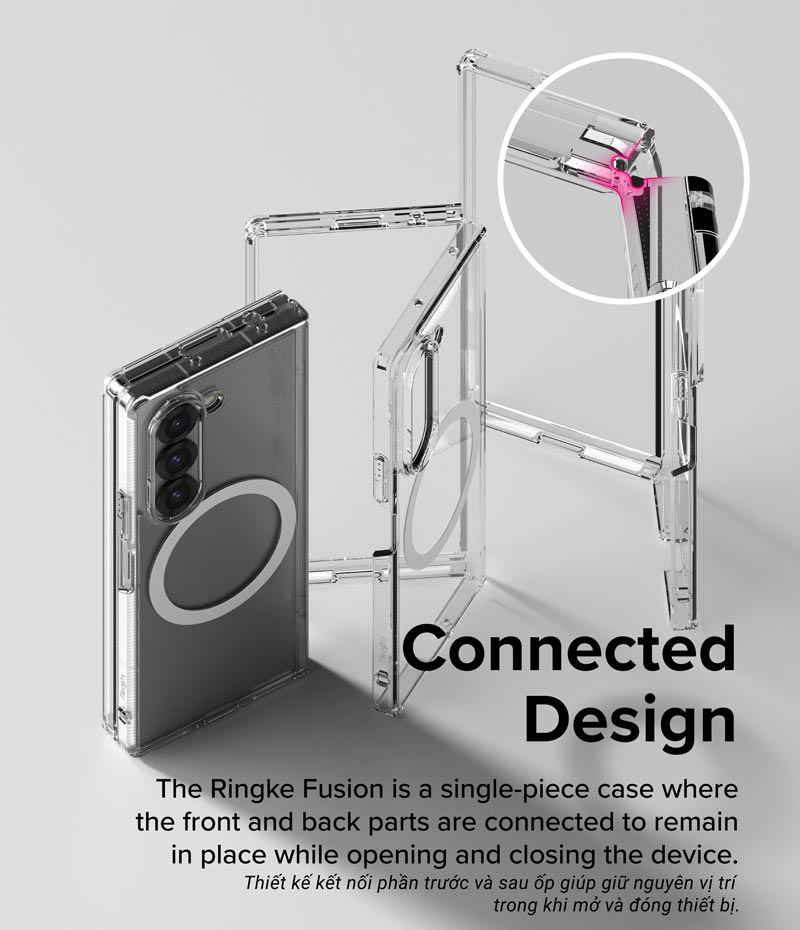 • Đặc biệt, dòng Fusion cho Galaxy Z Fold 6 có thiết kế kết nối phần trên và phần dưới ốp lưng, giúp giữ nguyên vị trí trong khi mở và đóng thiết bị.