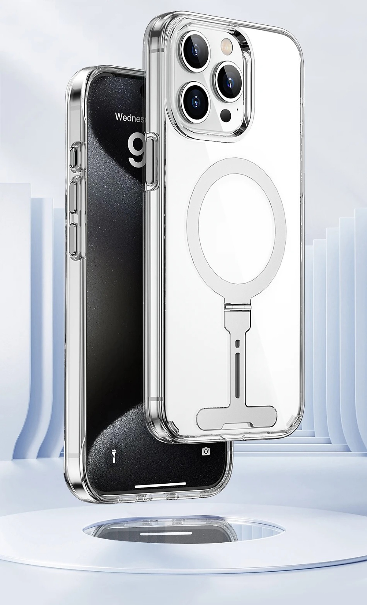 - Đây là một chiếc ốp lưng có chân đế chắc chắn và đa năng, được làm từ nhôm cấp hàng không nhẹ và bền. Ốp lưng này giúp dựng đứng điện thoại ở cả hai chế độ ngang và dọc, cho phép bạn xem TV hoặc Facetime với gia đình một cách thoải mái. Với thiết kế công thái học, nó cung cấp góc nhìn tốt nhất cho mắt của bạn. Chân đế cũng giúp bạn dễ dàng cầm nắm bằng một tay. Tương Thích Với Phụ Kiện MaQSafe: