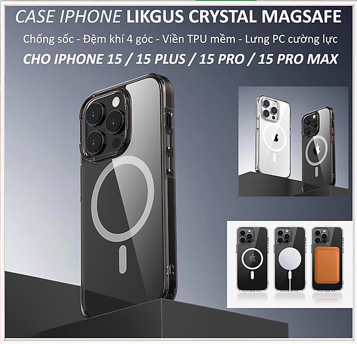 Ốp lưng sạc từ tính cho iPhone 15 / 15 Pro / 15 Plus / 15 Pro Max hiệu Likgus crytal trang bị bốn ưu điểm vượt trội mà không phải chiếc ốp lưng nào cũng có
