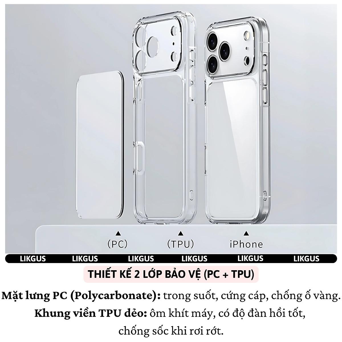 ✨ốp lưng trong suốt bảo vệ viền camera cho iPhone 17 Pro Max / 17 Pro / 17 Air / 17 hiệu Likgus Lin Camshield - Chống sốc