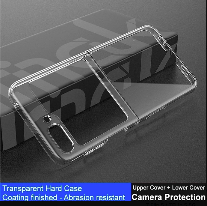 Ốp lưng Samsung Z Flip 5 (ZFlip 5) trong suốt chống ố pc, có nắp bảo vệ bản lề toàn diện