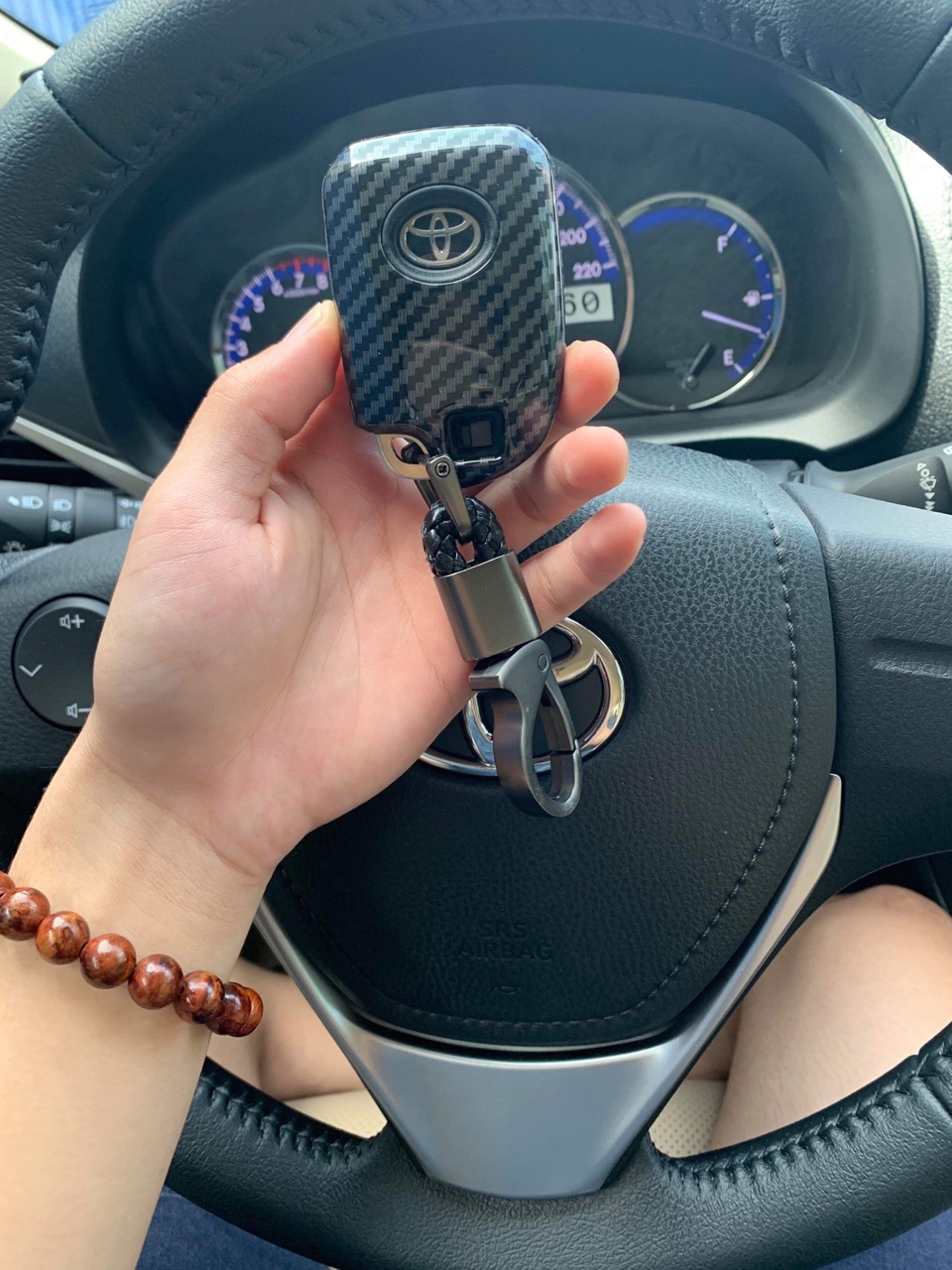 ✨Ốp nhựa carbon lót silicon bảo vệ chìa khóa xe Toyota Vios 2019 kèm móc đeo INOX