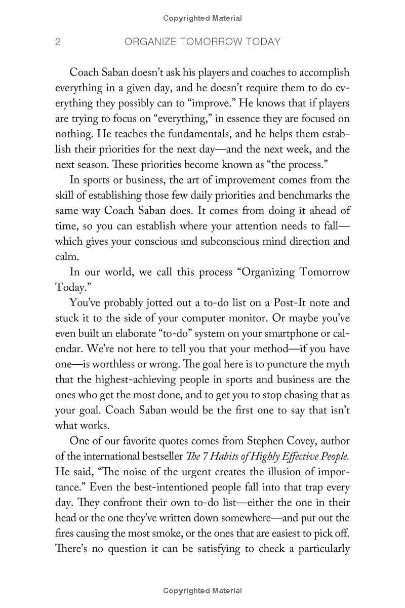 In Organize Tomorrow Today (OTT), two of the top minds in human performance come together to r the pathway to extreme success: Doing more is not the answer, and Selk and Bartow walk you through how to achieve more by doing less.