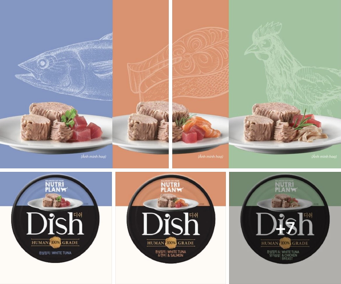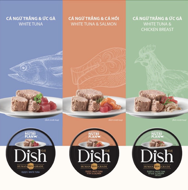 85gr - Pate Dongwon Dish cho Mèo lớn Mèo con thịt nguyên miếng thơm ngon nhập Hàn Quốc thành phần Cá Gà Sản xuất tại: Dongwon, 68 Mabang-ro, Seocho-gu, Seoul, Hàn Quốc Quy cách: 85g Pate cho mèo Dish là loại thức ăn dành riêng cho mèo, được sử dụng thành phần chính là cá & gà. Đây là loại thức ăn giàu protein, Taurine, axit amin và các khoáng chất khác rất tốt cho mèo. Đặc điểm sản phẩm Nguyên liệu chủ yếu là cá ngừ cá trắng thịt gà tươi ngon, tốt cho sức khỏe. Bổ sung các Axit amin cần thiết cho mèo như Taurine và Arginine. Bổ sung Probiotics (các vi khuẩn có lợi), hỗ trợ hệ tiêu hóa, nhuận tràng. Không sử dụng chất bảo quản, chất tạo vị, chất tạo đông. Thành phần dinh dưỡng Protein ≥ 11,8% Tro ≤ 1,3% Chất béo ≥ 0,15% Độ ẩm ≤ 98% Chất xơ thô ≤ 0,3% Các hương vị hiện có: 1. Dish White Tuna: vị Cá ngừ trắng Nguyên liệu: Cá ngừ vằn (thịt trắng), nước, nước cốt gà cô đặc, axit amin, chiết xuất cá minh thái khô, Probiotics. 2. Dish White Tuna & Salmon: vị Cá ngừ trắng & Cá hồi Nguyên liệu: Cá ngừ vằn (thịt trắng), nước, cá hồi, nước cốt gà cô đặc, axit amin, chiết xuất cá minh thái khô, Probiotics. 3. Dish White Tuna & Chicken: Cá ngừ trắng & Thịt gà Nguyên liệu: Cá ngừ vằn (thịt trắng), nước, ức gà, nước cốt gà cô đặc, axit amin, chiết xuất cá minh thái khô, Probiotics.