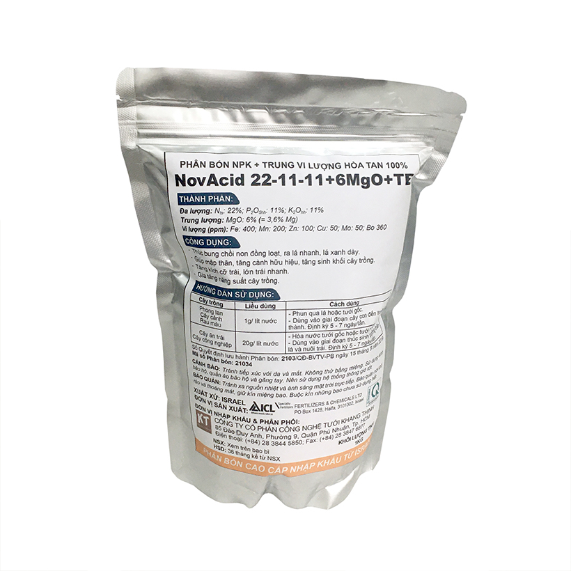 (Phân Bón Hoà Tan 100% NovAcid 22-11-11-6MgO+Te, Phân Bón Lá NPK)
