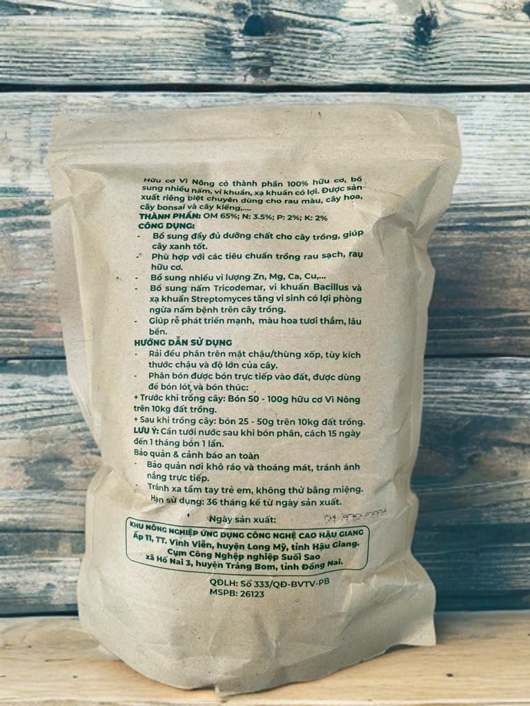 - Trước khi trồng cây: bón 50 - 100g hữu cơ Vì Nông trên 10kg đất trồng.