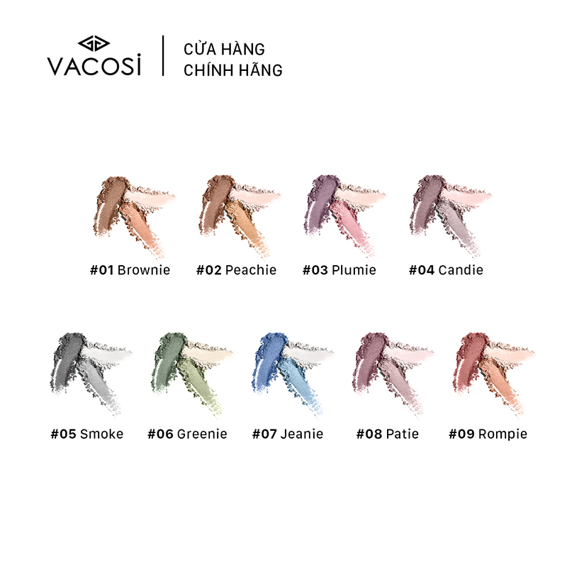 Phấn mắt VACOSI có kết cấu từ các hạt nhỏ mịn giàu khoáng chất được nung ở nhiệt độ cao để tạo màu sắc sáng bóng, bền đẹp. Thiết kế dạng hộp tròn đơn giản và tiện lợi, thích hợp cho mục đích trang điểm cá nhân hoặc chuyên nghiệp. Mỗi hộp phấn mắt gồm 3 màu cùng tone. Bạn có thể tạo ra những màu mắt ưa thích bằng cách kết hợp các sắc màu này với nhau.