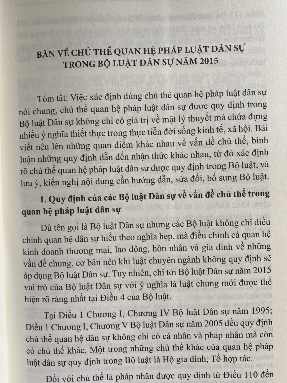 Bộ Luật Dân Sự Năm 2005 Và 2015 Phân Tích – Đối Chiếu Bộ luật dân sự quy định địa vị pháp lý, chuẩn mực pháp lý về cách ứng xử của cá nhân, pháp