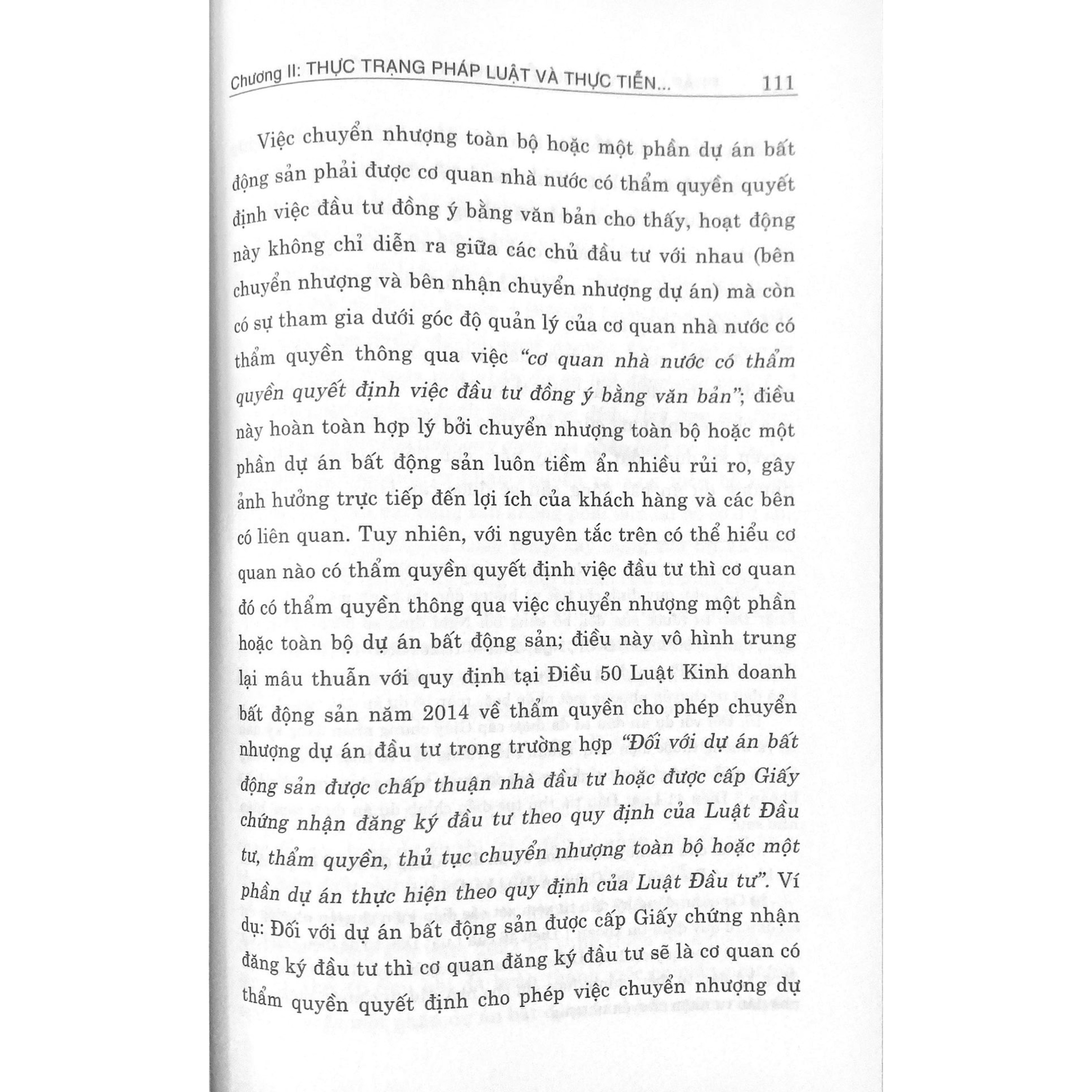 Trên cơ sở nghiên cứu và so sánh, phân tích, đánh giá thực trạng pháp luật, thực tiễn thực thi pháp luật, cuốn sách Pháp luật về chuyển nhượng, góp vốn các dự án bất động sản của doanh nghiệp kinh doanh bất động sản (Sách chuyên khảo) của Nhà xuất bản Chính trị quốc gia Sự thật, do PGS. TS. Nguyễn Thị Nga - Khoa Pháp luật kinh tế, Trường Đại học Luật Hà Nội làm chủ biên, tập trung làm rõ những vấn đề lý luận về chuyển nhượng, góp vốn các dự án kinh doanh bất động sản dưới góc nhìn đa chiều; phân tích, đánh giá thực tiễn thực thi pháp luật về các hoạt động này, qua đó đề xuất những giải pháp hoàn thiện pháp luật, nâng cao hiệu quả áp dụng pháp luật về hoạt động chuyển nhượng, góp vốn dự án bất động sản, hướng tới sự phát triển ổn định và bền vững của thị trường này tại Việt Nam.