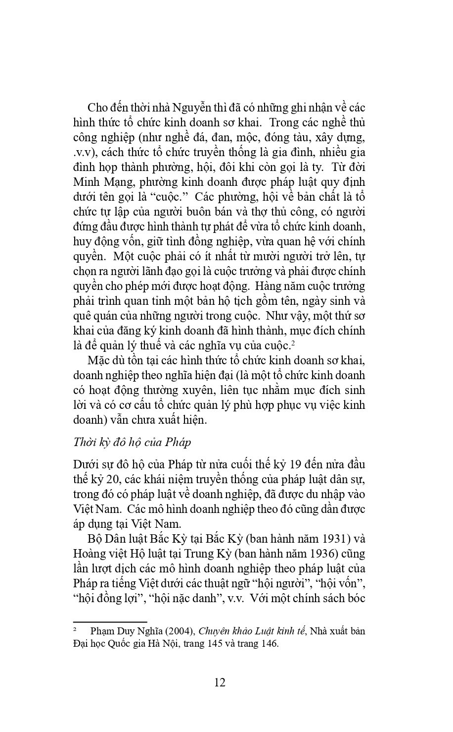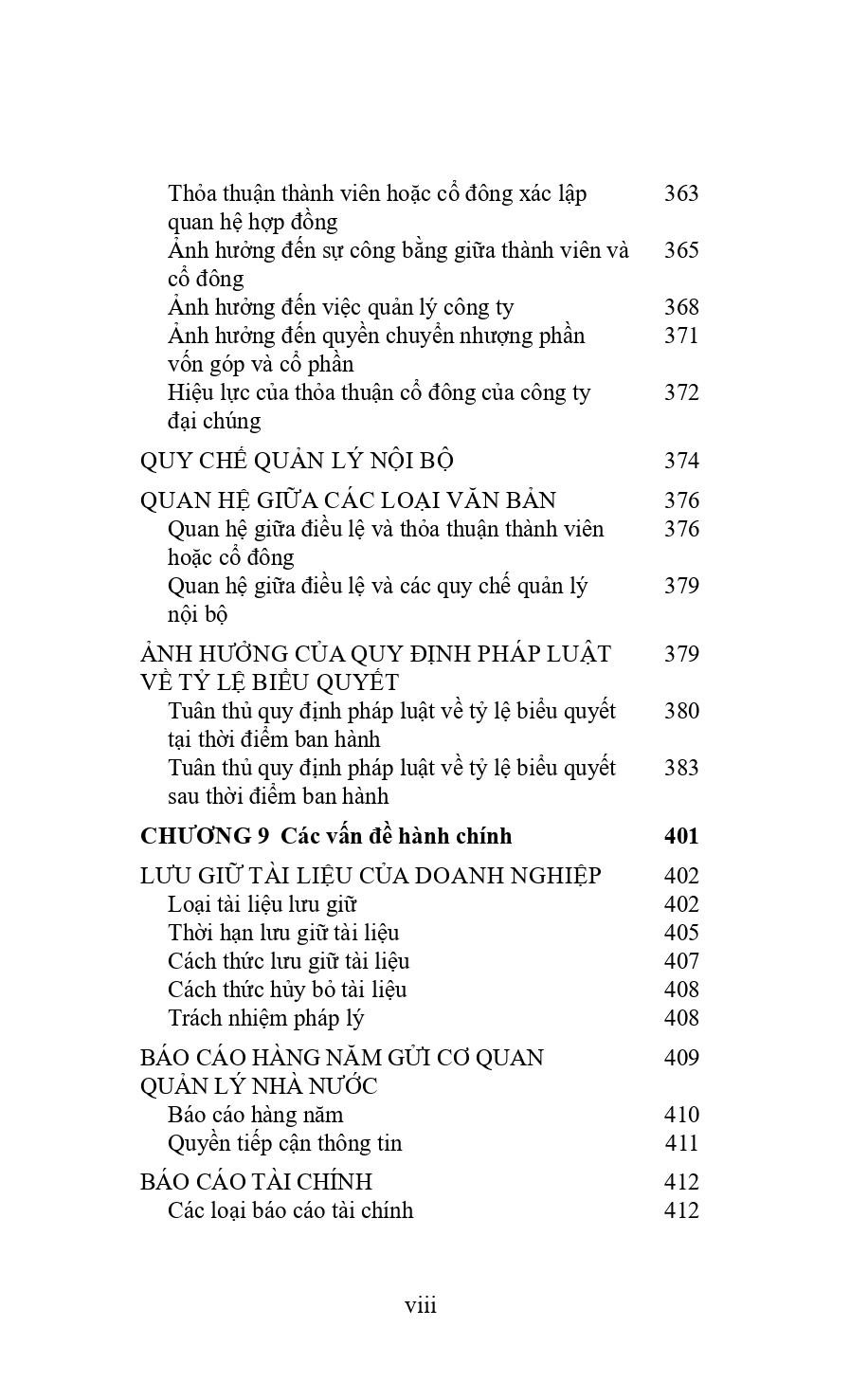 Trải dài trong hơn 1000 trang, cuốn sách phân tích các vấn đề pháp lý cơ bản liên quan đến việc thành lập, tổ chức quản lý và hoạt động của doanh nghiệp. Kết cấu của cuốn sách gồm hai mươi chương và chia làm năm phần, tập trung vào hai hình thức doanh nghiệp thông dụng nhất là công ty trách nhiệm hữu hạn (CTTNHH) và công ty cổ phần (CTCP).