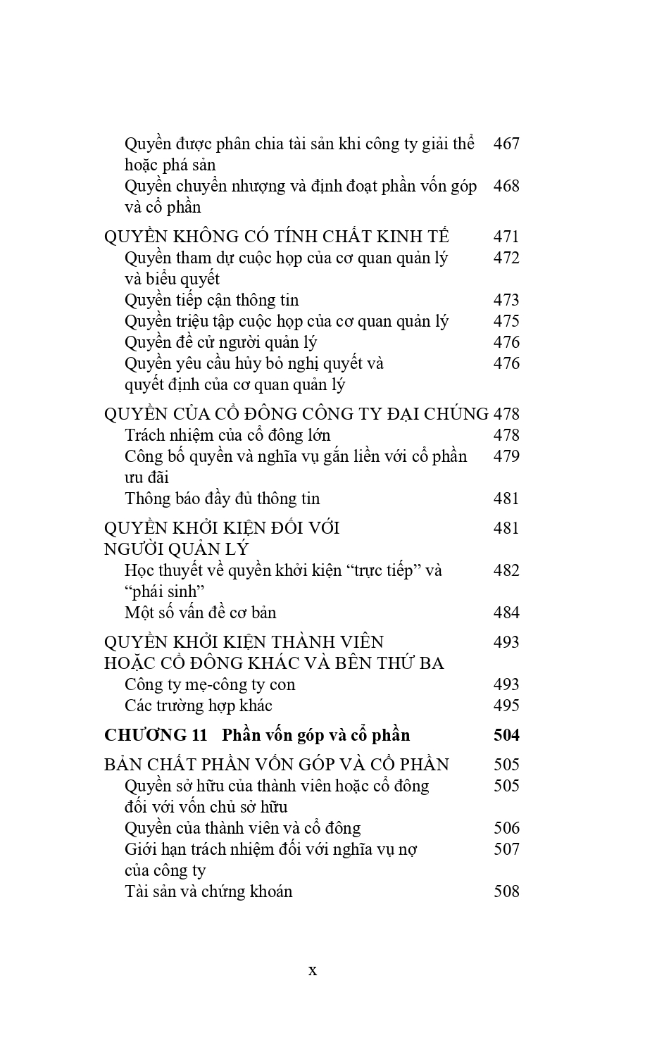 • Phần II (từ Chương 10 đến Chương 12) tập trung vào các vấn đề pháp lý liên quan đến tư cách và quyền của thành viên CTNHH và cổ đông CTCP.