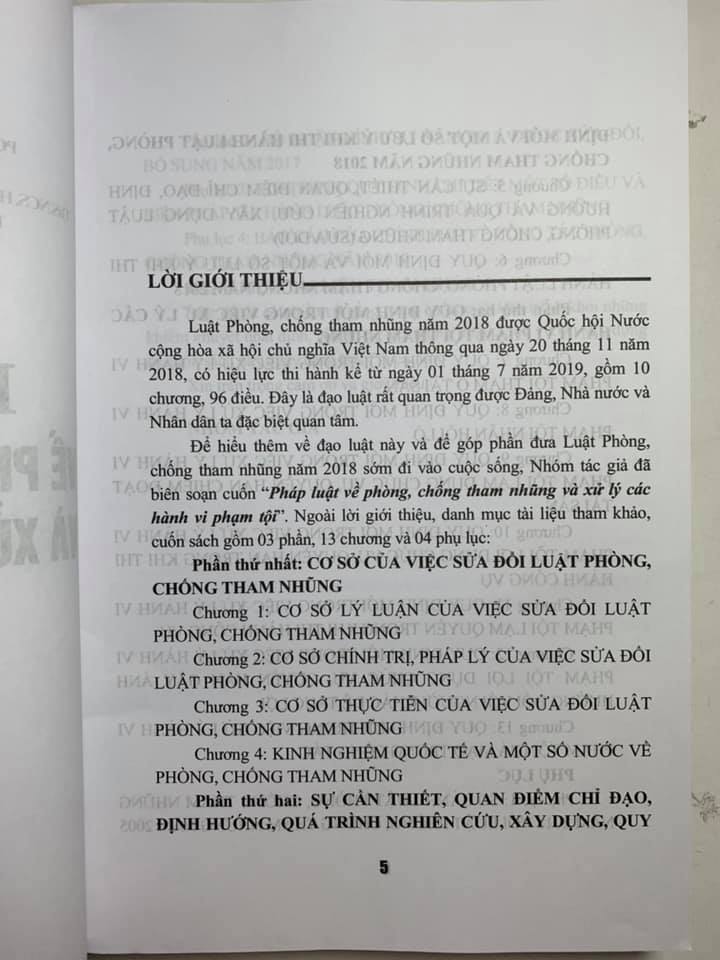 Để hiểu thêm về đạo luật Phòng, chống tham nhũng có hiệu lực từ ngày 1/7/2019 và để góp phần đưa bộ luật này sớm đi vào cuộc sống, Nhóm tác giả đã biên soạn cuốn: Pháp luật về phòng, chống tham nhũng và xử lý các hành vi phạm tội. Ngoài lời giới thiệu, danh mục tài liệu tham khảo, cuốn sách gồm 3 phần, 13 chương và 4 phụ lục: