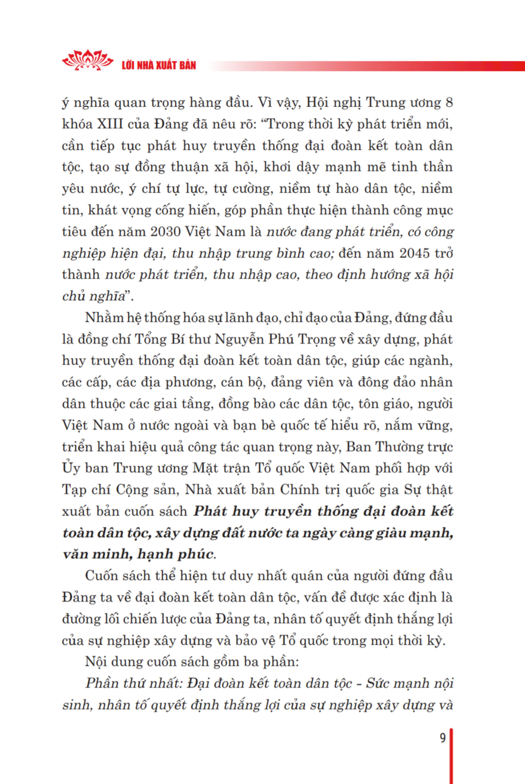 Cuốn sách tuyển chọn các bài nói, bài viết, bài phát biểu, trả lời phỏng vấn, thư, điệ của đồng chí Tổng Bí thư Nguyễn Phú Trọng, thể hiện tư tưởng nhất quán, xuyên suốt