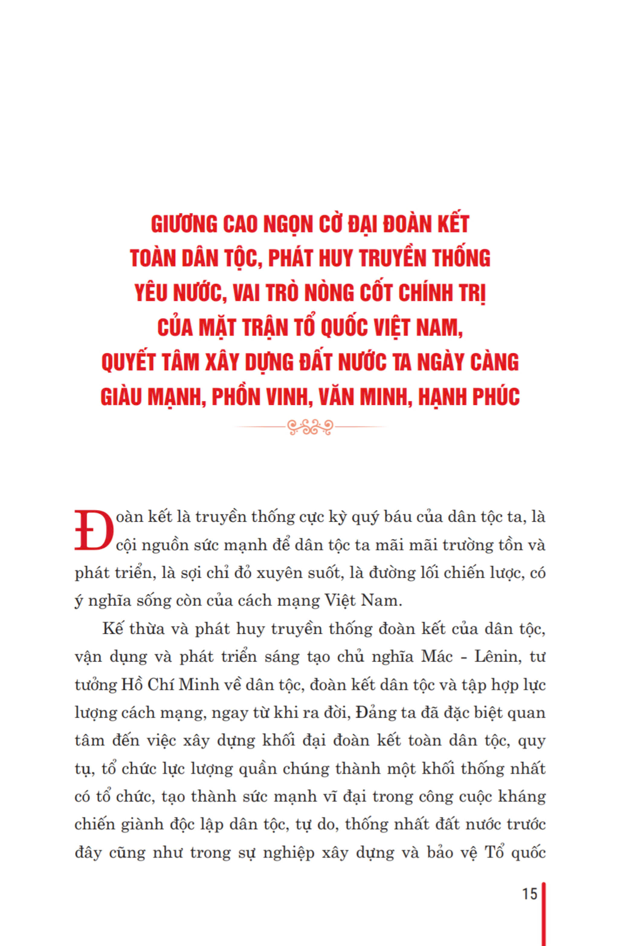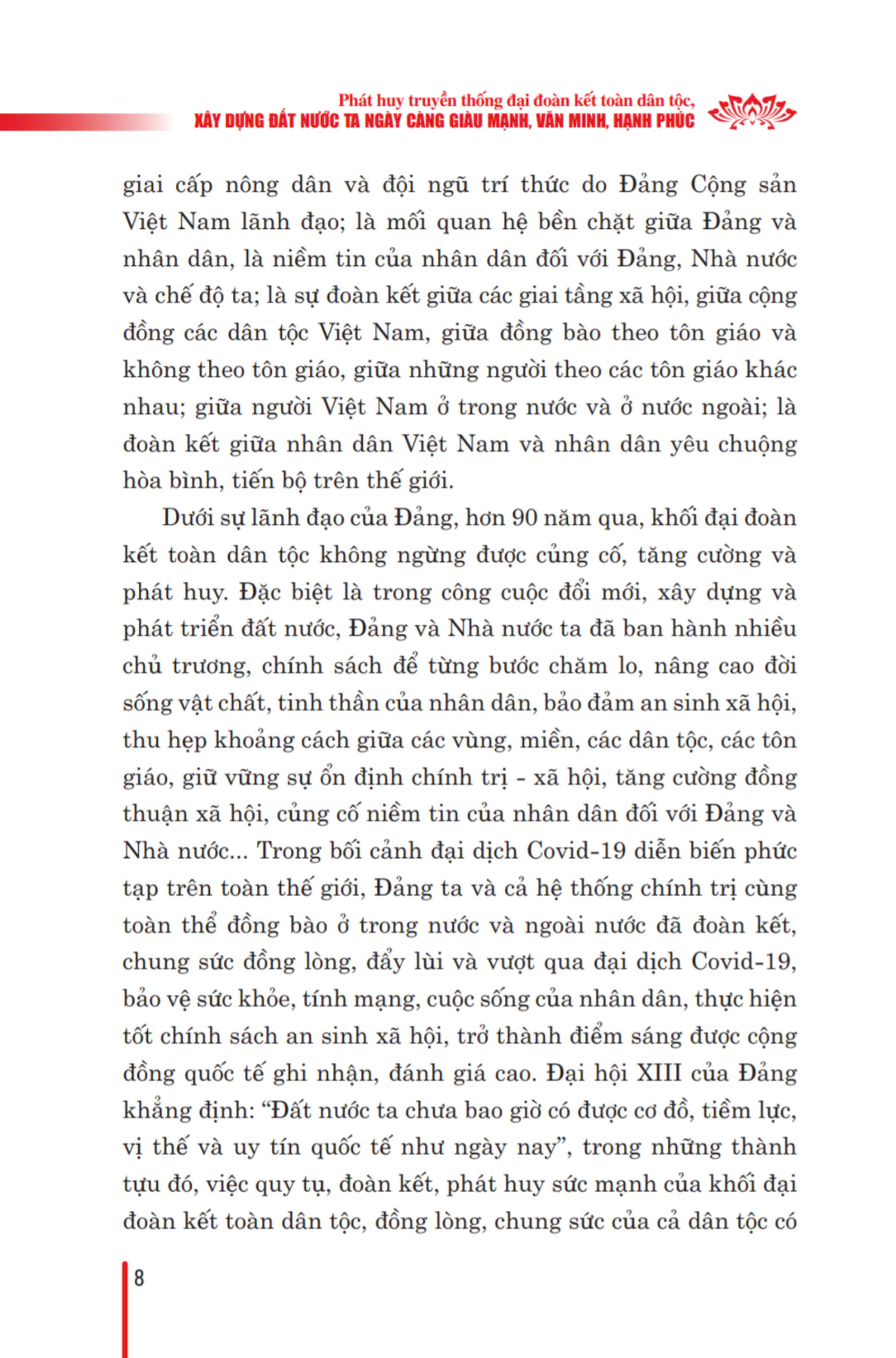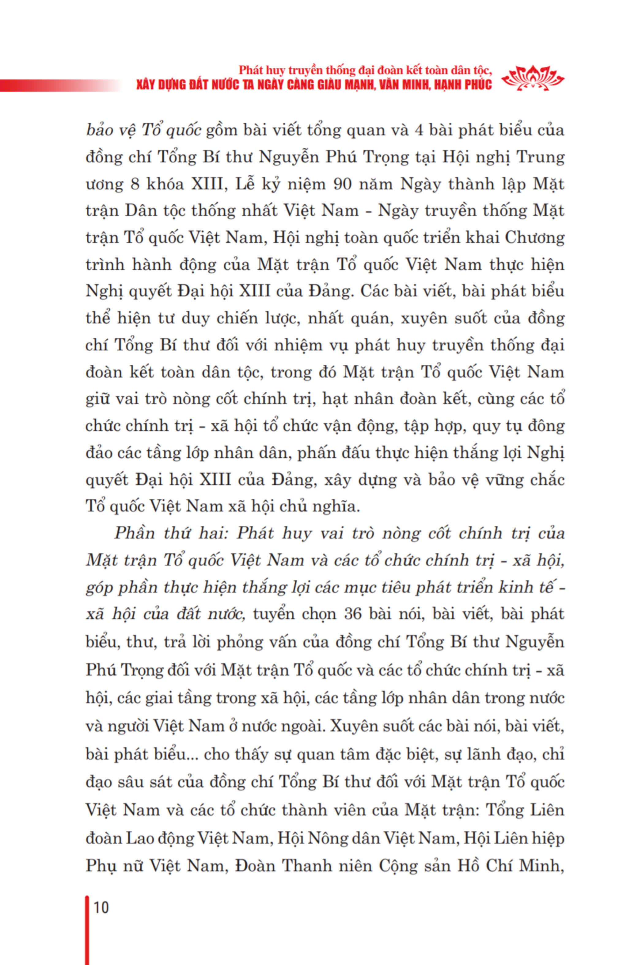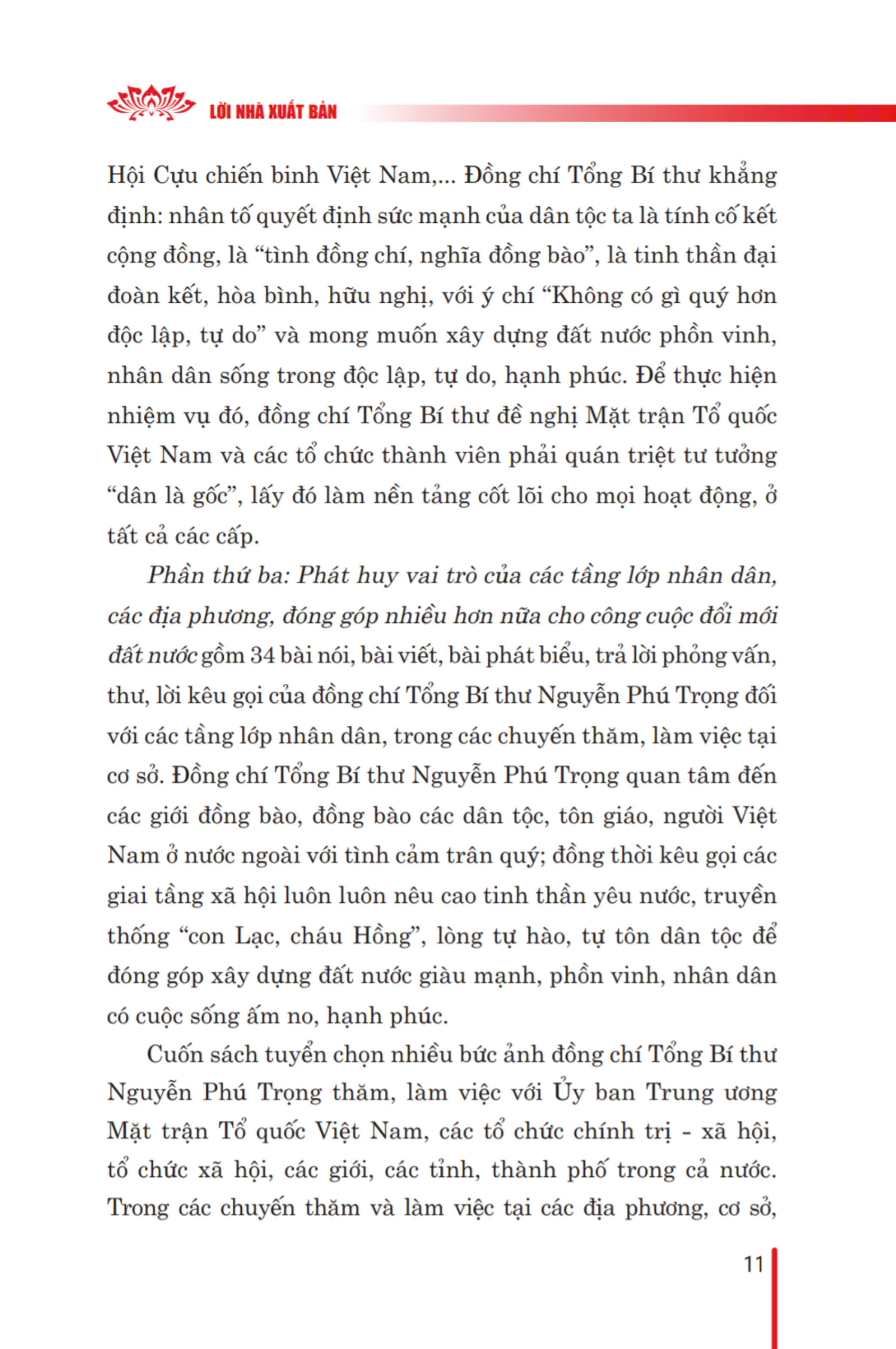 Cuốn sách thể hiện tư duy nhất quán của người đứng đầu Đảng ta về đại đoàn kết toàn dân tộc, vấn đề được xác định là đường lối chiến lược của Đảng ta, nhân