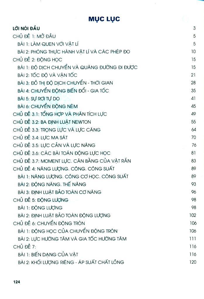 Cuốn sách gồm 7 chủ đề gắn liền với các nội dung theo yêu cầu cần đạt trong chương trình môn Vật lí lớp 10 của Bộ Giáo dục và Đào tạo. Mỗi chủ đề được chia thành các bài học phù hợp với từng nội dung kiến thức cốt lõi. Mỗi bài học trong cuốn sách được trình bày theo cấu trúc thống nhất, bao gồm 4 phần: