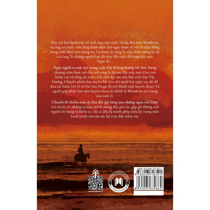 Ngày người ta mắc kẹt trong cuộc Đại Khủng hoảng tối tăm, loạng choạng nắm được sợi dây ánh sáng le lói sau lớp mây mù ở hai con hươu cao cổ sống sót một cách thần kỳ sau siêu bão trên Đại Tây Dương. Chuyến phiêu lưu xuyên Mỹ kéo dài mười hai ngày sau đó để đưa tụi hươu trở về sở thú San Diego đã trở thành một huyền thoại. Và người góp phần làm nên huyền thoại ấy chính là Woodrow trẻ trung của tuổi 17.