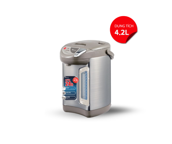 - Dung tích: 4.5 lít - Công suất: 700W - Chức năng: Đun sôi, Giữ nóng - Mức nhiệt giữ nóng: 3 mức: 60, 85, 98°C - Hẹn giờ đun sôi: Sau 6 tiếng -