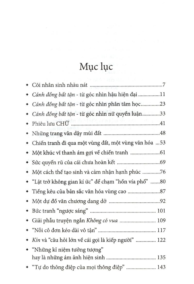 Tiểu thuyết đương đại Việt Nam nói riêng là thế giới đa chiều kích. Tận dụng khả năng chưa đông cứng của tiểu thuyết, táo bạo trong thể nghiệm bút pháp hậu hiện đại, nhiều cây bút đã mang đến cho độc giả những bữa tiệc văn chương với thực đơn đầy tính mời mọc.