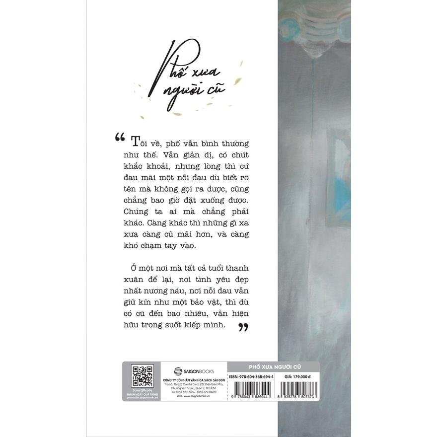 “Phố xưa người cũ” là một quyển sách thể hiện bằng tình yêu nói đến ở một nơi mà tất cả tuổi thanh xuân để lại, nơi tình yêu đẹp nhất nương náu, nơi nỗi đau vẫn giữ kín như một bảo vật, thì dù có cũ đến bao nhiêu, vẫn hiện hữu trong suốt kiếp mình.