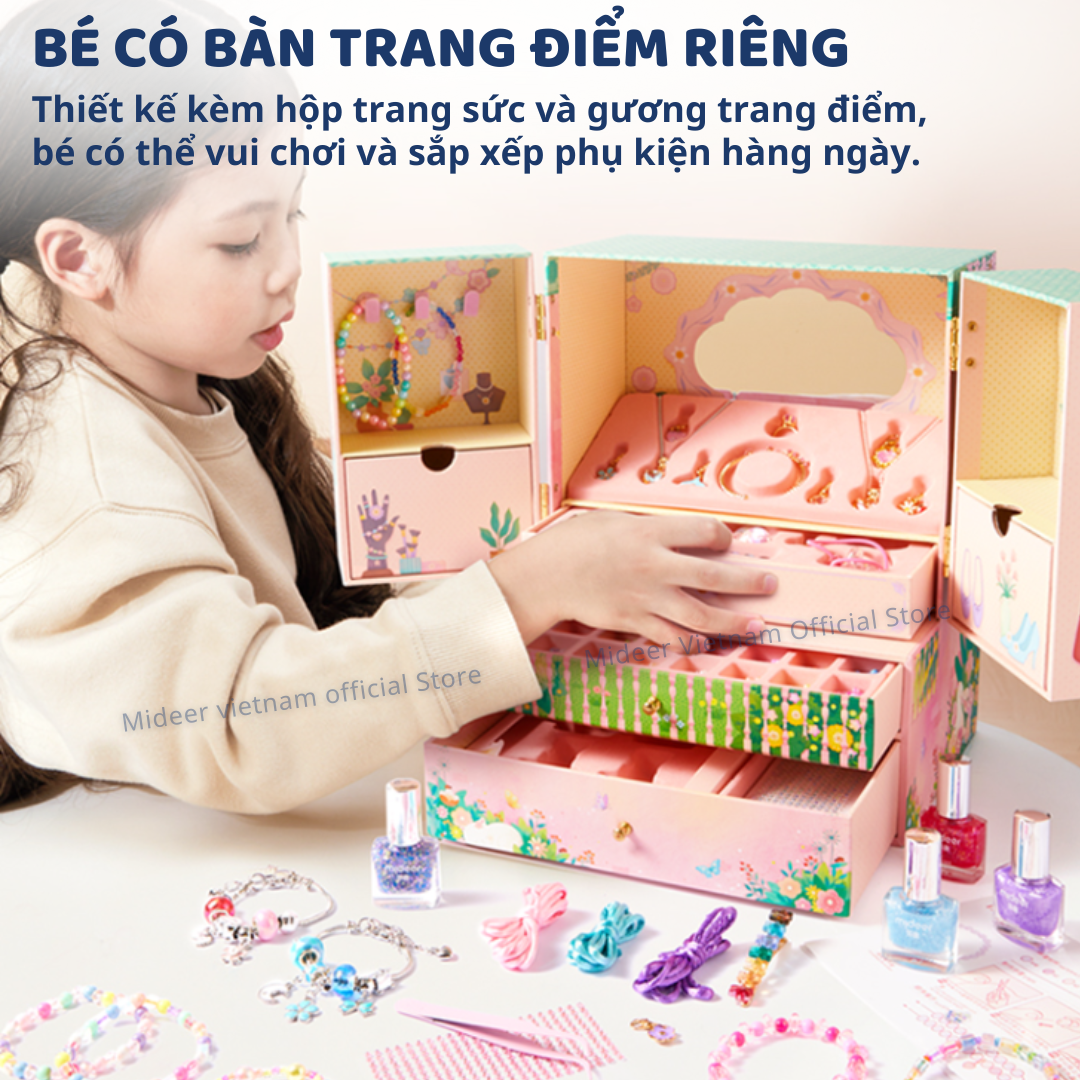 CHÀO MỪNG BẠN ĐẾN VỚI MIDEERVIETNAM HÀNG SẴN SHIP HỎA TỐC, BẢO HÀNH CHÍNH HÃNG ————————————— Phụ kiện cho bé gái vòng tay, vòng charm, sơn móng tay Mideer Girls Power Lacing Beads Mideer Girls Power Lacing Beads – bộ phụ kiện sáng tạo giúp bé gái trở thành nàng công chúa rực rỡ nhất! Với đa dạng nguyên liệu làm vòng tay, vòng charm, sơn móng tay an toàn, cùng thiết kế hộp trang điểm xinh xắn, sản phẩm giúp bé rèn luyện sự khéo léo và khả năng sáng tạo tuyệt vời. 11 Lý doba mẹ nên chọn Phụ kiện cho bé gái vòng tay, vòng charm, sơn móng tay Mideer