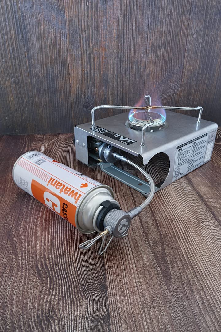 Phụ kiện dây nối dài bình gas mini có van Campingmoon Z37 dùng điều chuyển cho bếp Soto ST-310 ST-340 và bếp cassette compact.