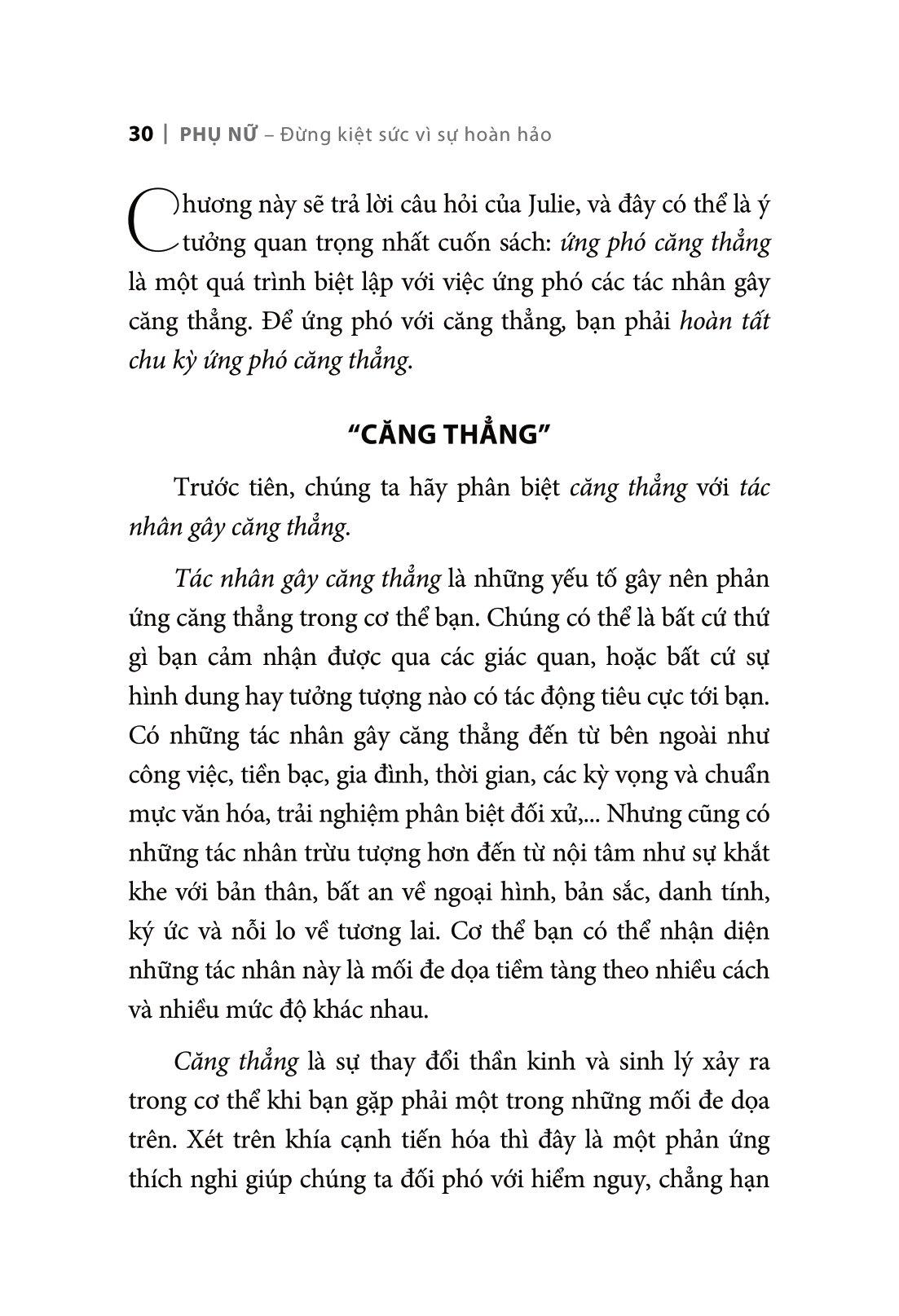 Cuốn sách “Phụ nữ - Đừng kiệt sức vì sự hoàn hảo” được chia làm 3 phần: