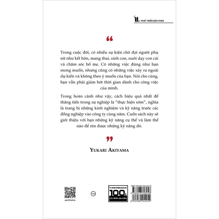 Trong hoàn cảnh như vậy, cách hiệu quả nhất để thăng tiến trong sự nghiệp là “thực hiện sớm”. Tôi rút ra được điều này từ các cuộc nói chuyện với nhiều nữ quản lý đã thăng tiến thành công trong sự nghiệp, cũng như từ kinh nghiệm của riêng tôi.
