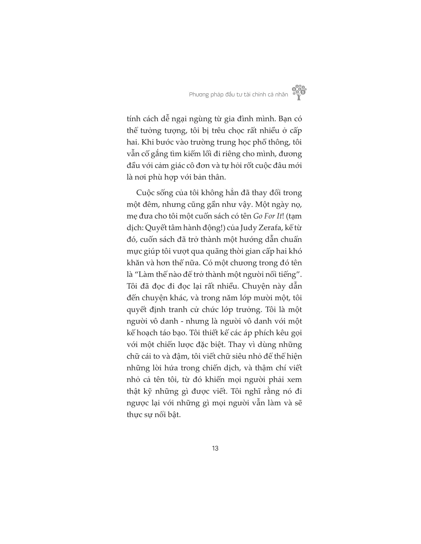 Vậy sẽ thế nào nếu bạn vừa kiếm được nhiều tiền hơn, vừa có một quỹ tiết kiệm lớn hơn, vừa xây dựng được những khoản đầu tư hiệu quả, đồng thời tạo ra những tác động tích cực cho thế giới và giúp ích cho hàng ngàn người khốn khổ khác? Đó là một ý tưởng tuyệt vời mà bạn hoàn toàn có thể thực hiện ngay hôm nay. Và “Phương pháp đầu tư tài chính cá nhân” sẽ giúp bạn làm điều đó.