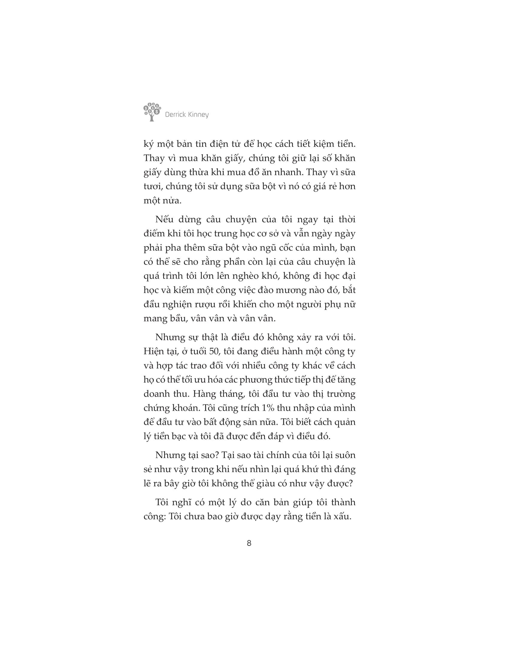Cuốn sách được viết bởi cố vấn tài chính nổi tiếng, Derrick Kinney, sẽ giúp bạn học được cách kiếm nhiều tiền hơn – tiết kiệm nhiều hơn – trao đi nhiều hơn để tạo ra ý nghĩa lớn lao cho xã hội, bằng cách cung cấp một kế hoạch hành động cụ thể bao gồm: