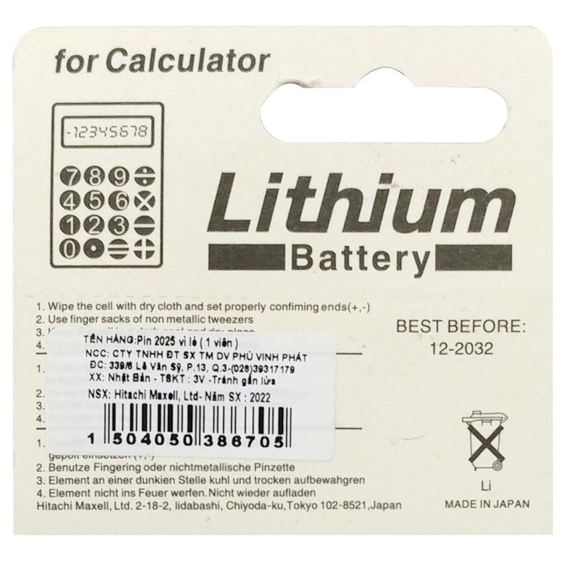 Vỉ 1 viên pin Maxell CR2025 3V lithium made in Japan