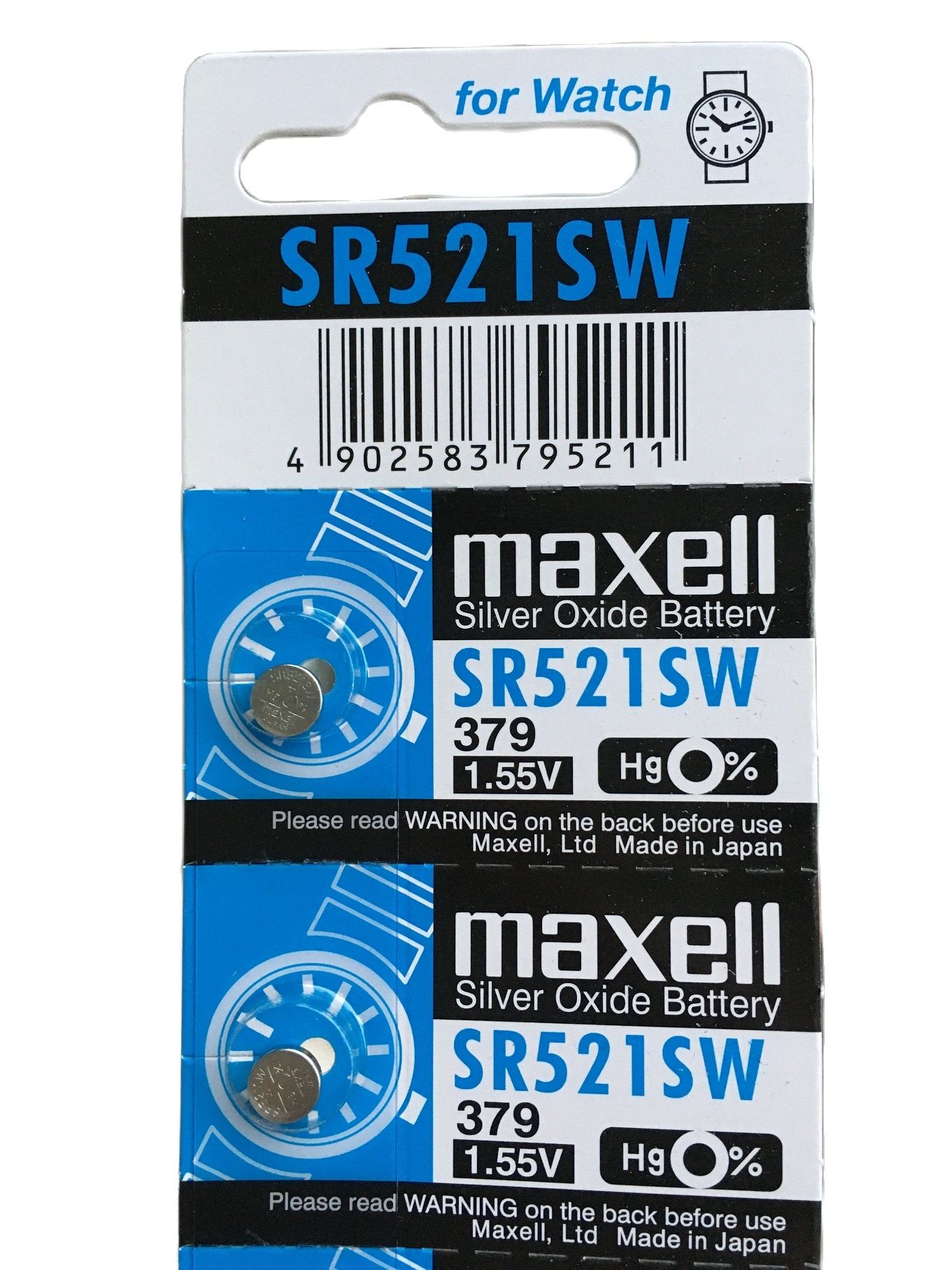 Pin đồng hồ đeo tay Maxell Silver Oxide SR521SW/379/G0 1.55V Pin Maxell chính hãng của Nhật là pin chất lượng cao thay cho đồng hồ đeo tay Kích cỡ/mã pin: SR521 hoặc LR521 hoặc 379