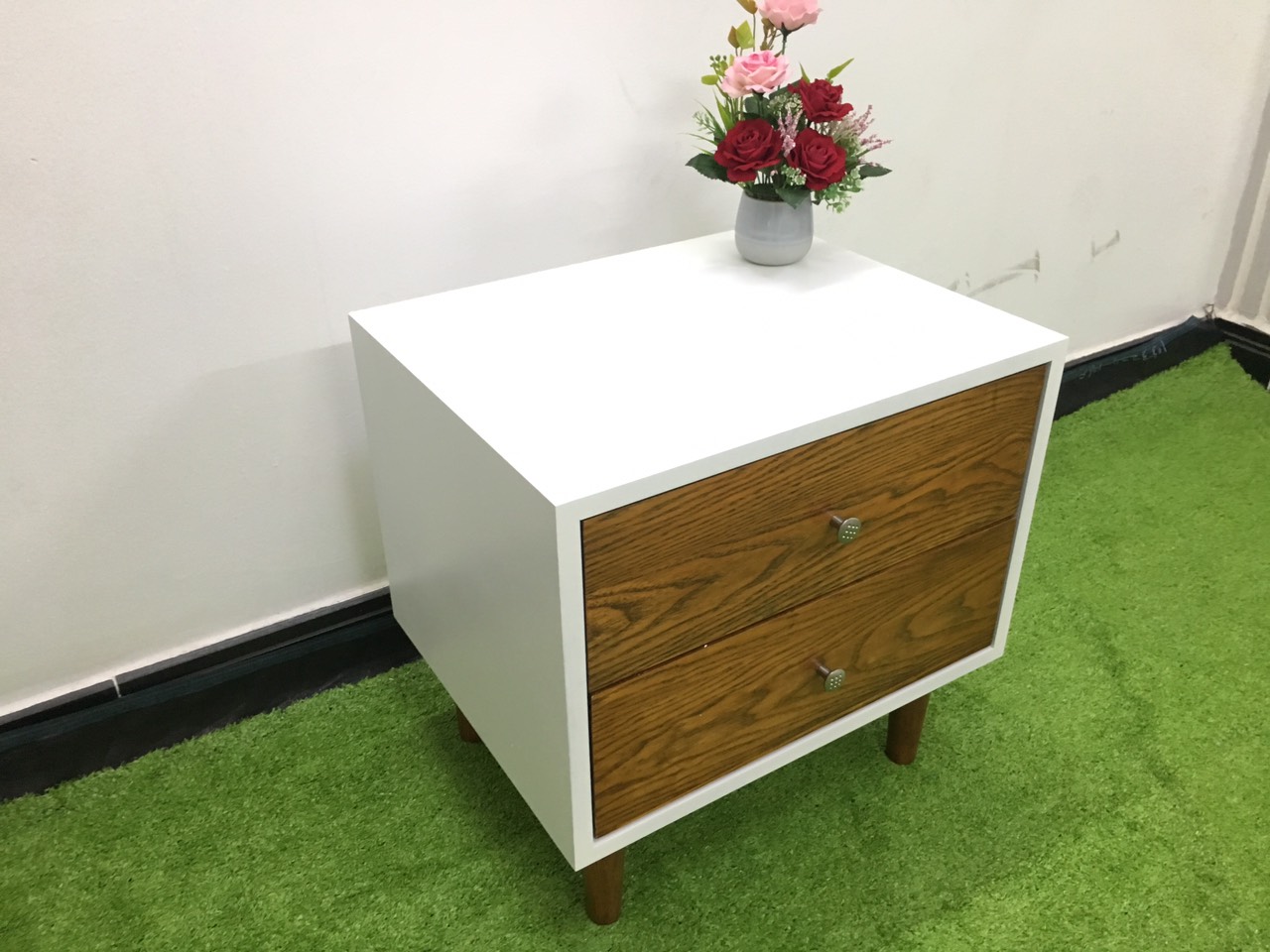 THÔNG TIN SẢN PHẨM - Tên sản phẩm: Tab đầu giường phong cách Nordic - Chất liệu: Gỗ MDF phủ melamin, chân gỗ sồi tự nhiên - Màu sắc: Trắng - Vân gỗ - Cấu