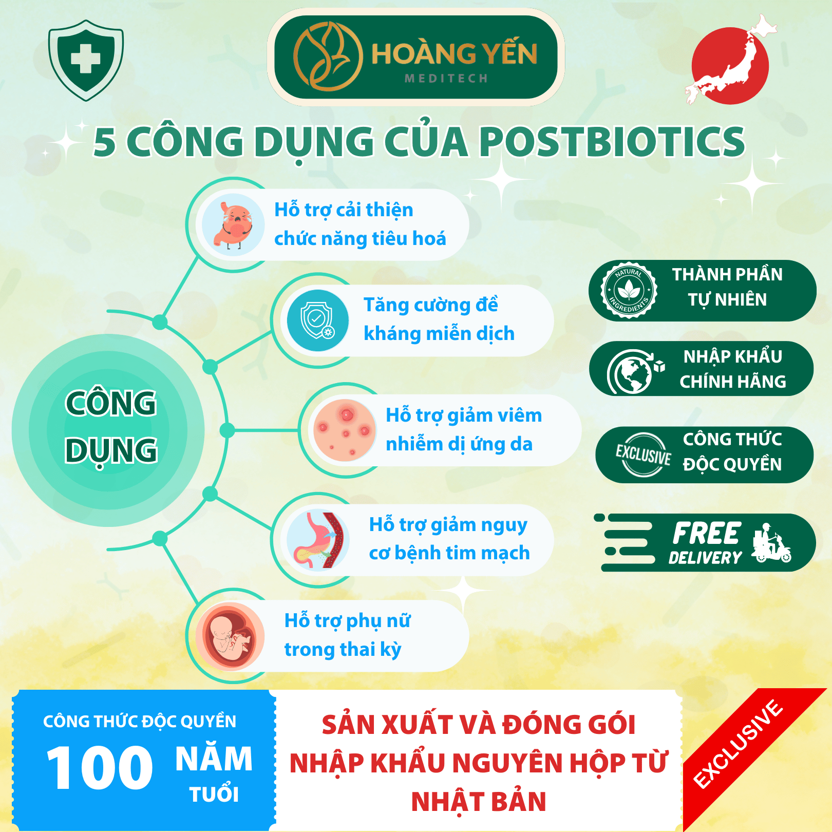 - Các công dụng chính của Men vi sinh Postbiotics Supplement Premium: