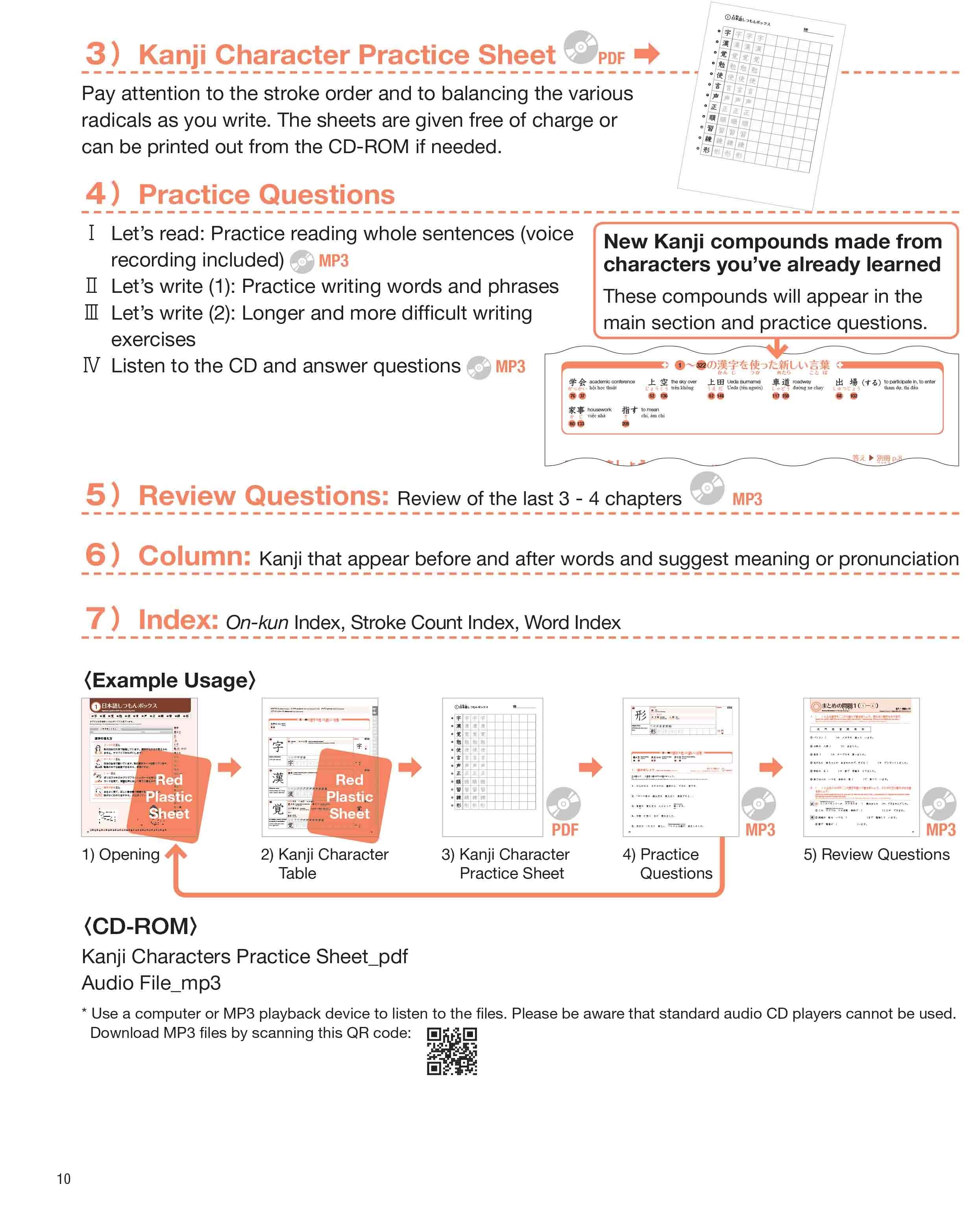 • Học viên có thể thực hành viết chữ Kanji thông qua Bảng luyện tập chữ Kanji kèm theo sách hoặc tải từ CD – ROM.