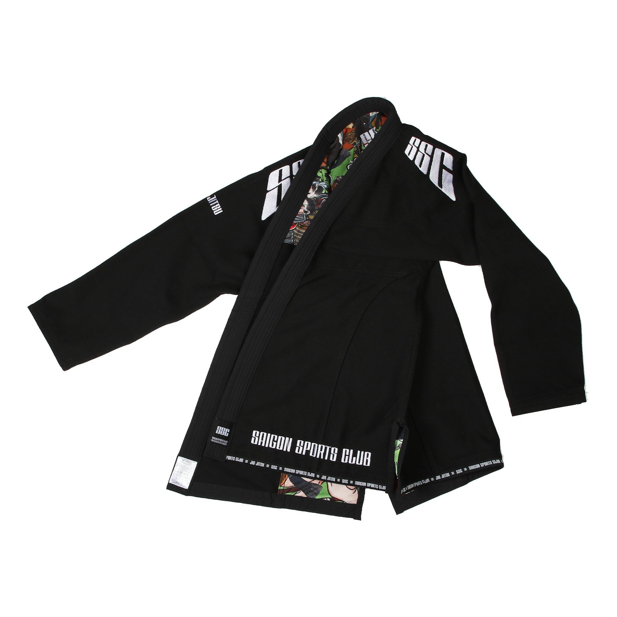 SSC Premium Gi được lấy cảm hứng từ bức tranh nghệ thuật tại khu tập Jiu Jutsu – MMA tại Saigon Sports Club với các chiến binh được vẽ theo phong cách Samurai. - Áo