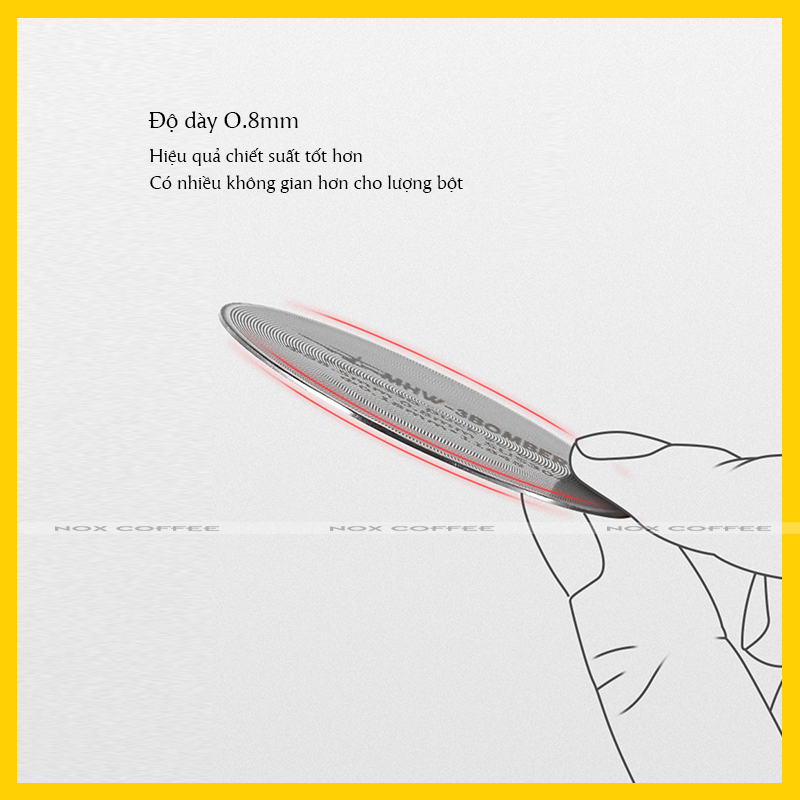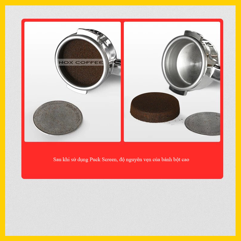 Sau khi nén cà phê thành 1 khối trong giỏ lọc (basket filter), đặt tấm Puckscreen này lên trên mặt cà phê sẻ tránh tình trạng cà phê nổi lềnh bềnh làm bẩn shower screen của máy pha.