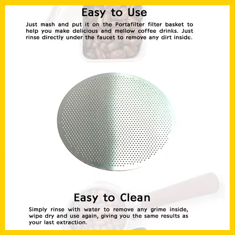 Sau khi nén cà phê thành 1 khối trong giỏ lọc (basket filter), đặt tấm Puckscreen này lên trên mặt cà phê sẻ tránh tình trạng cà phê nổi lềnh bềnh làm bẩn shower screen của máy pha.